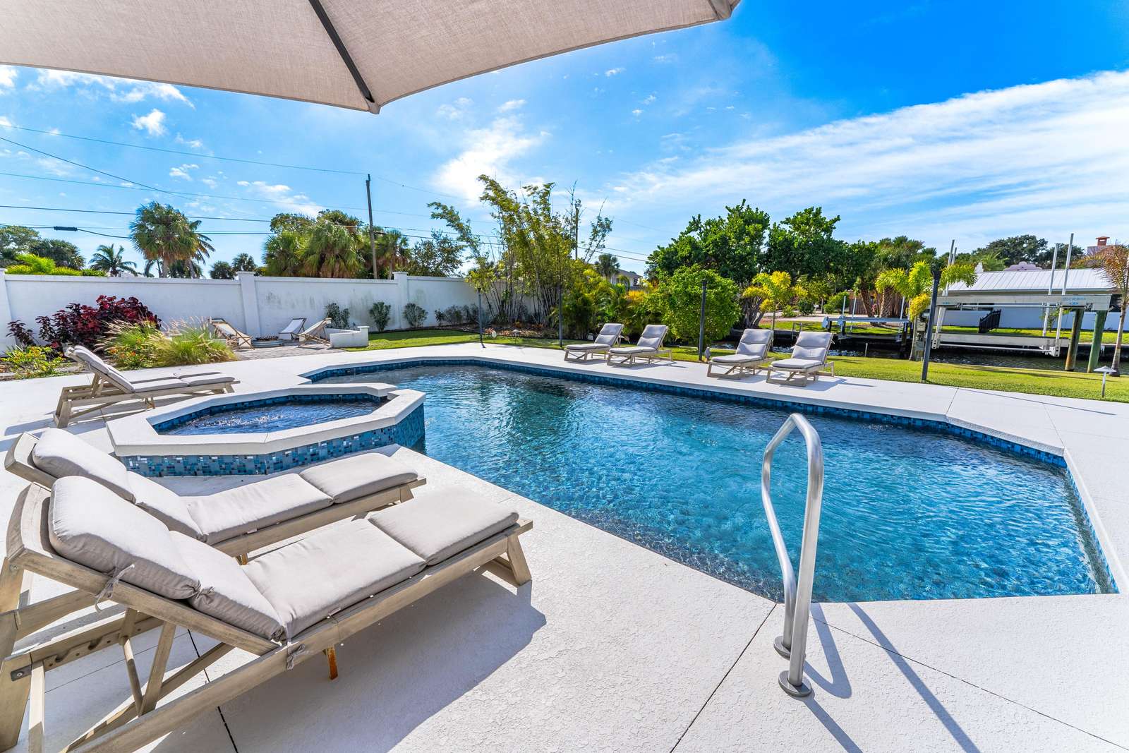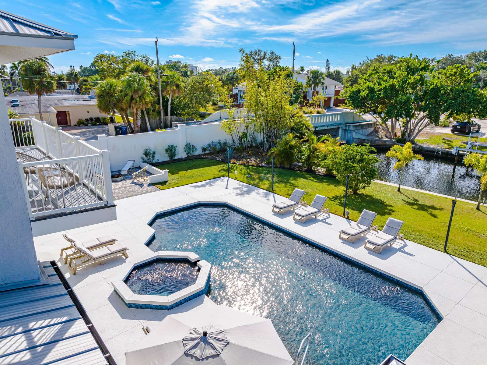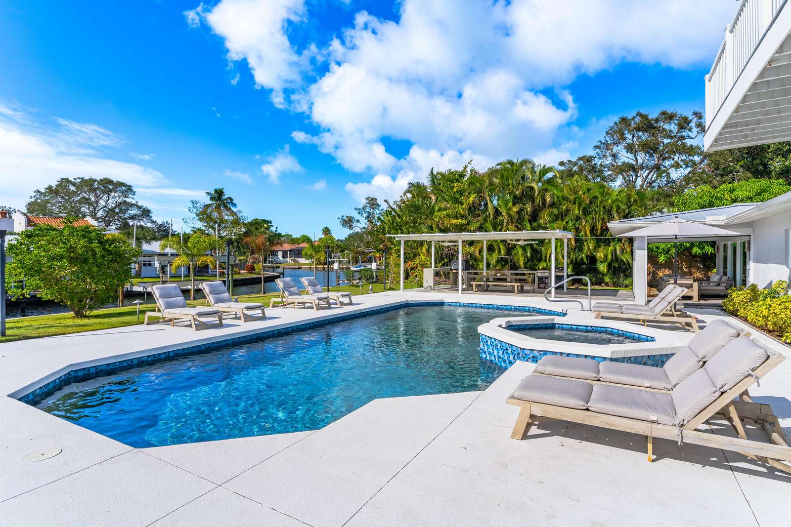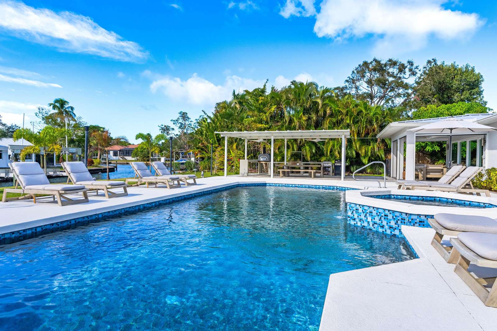 This spacious and beautiful house on the canal with a heated saltwater pool is 3,824 sq ft with 4 bedrooms and 4.5 bathrooms. Boat dock with lift available upon request.