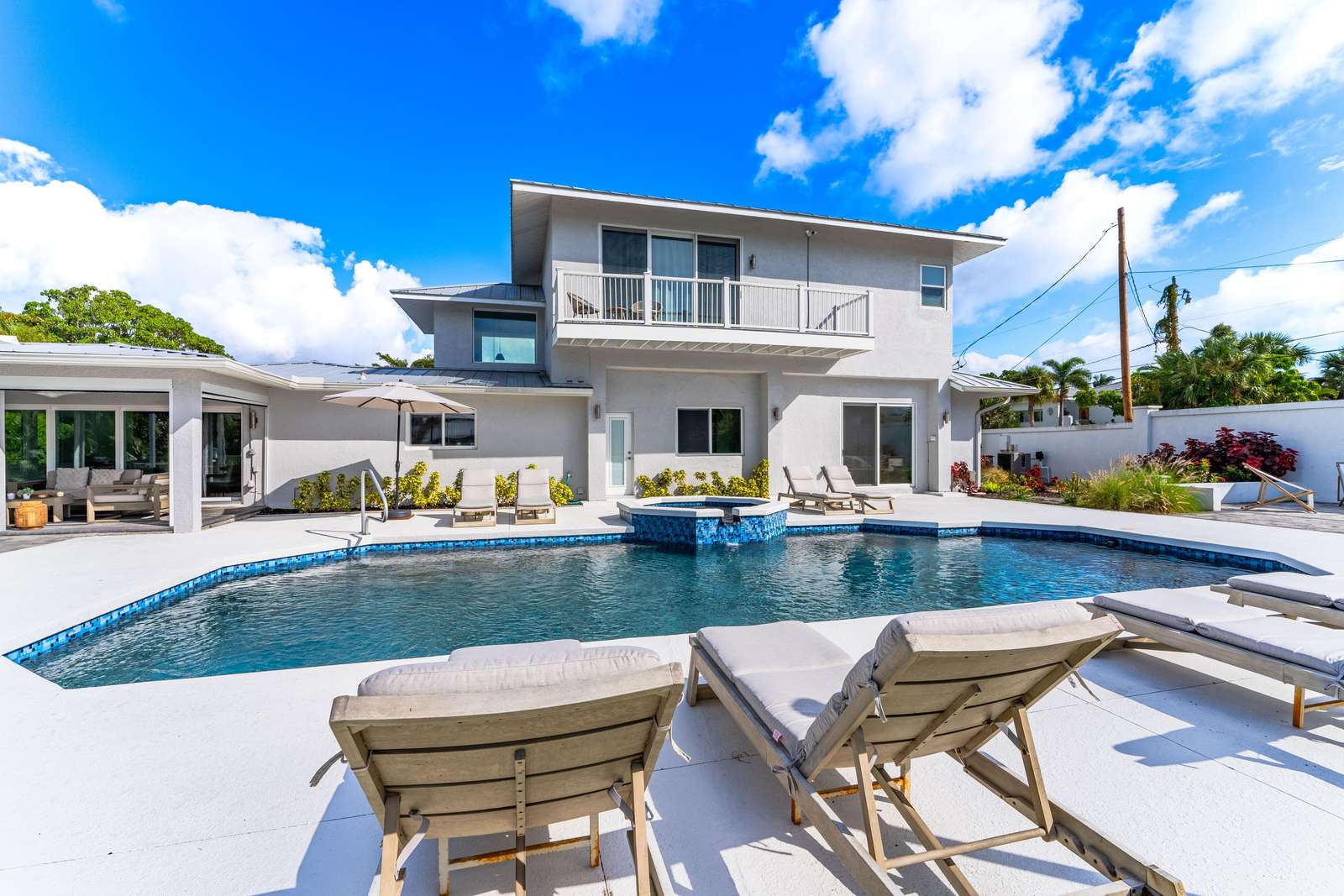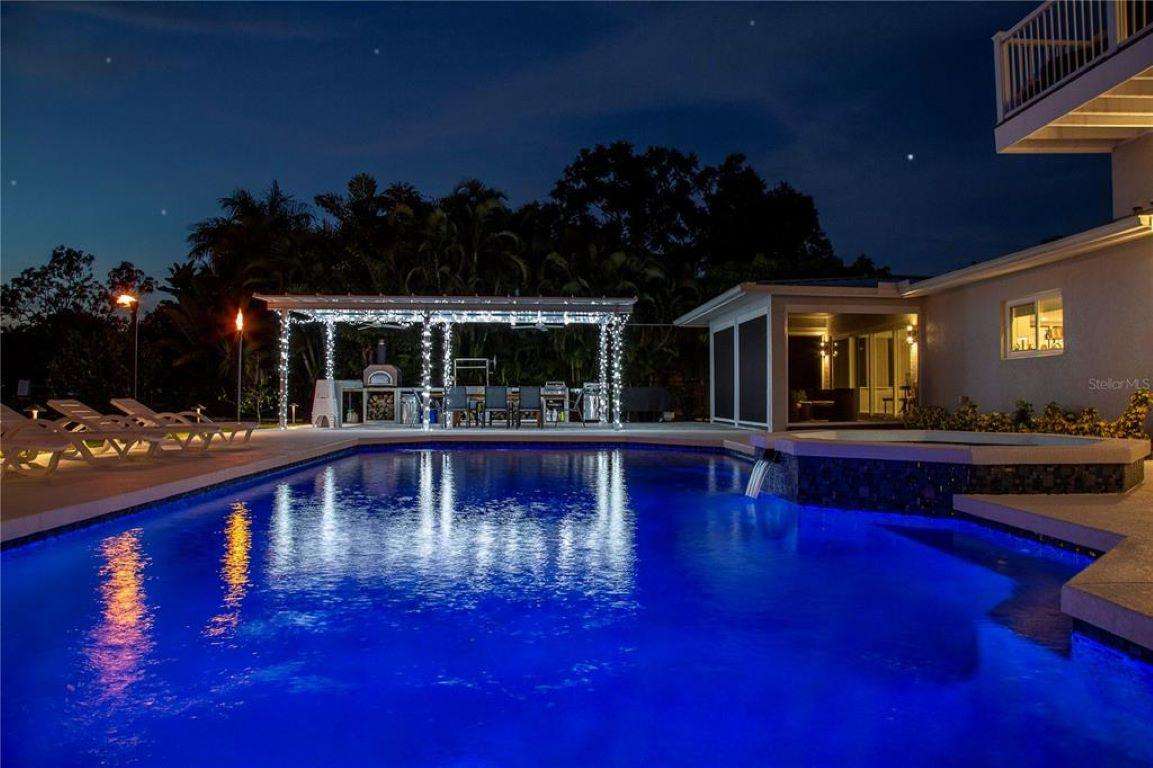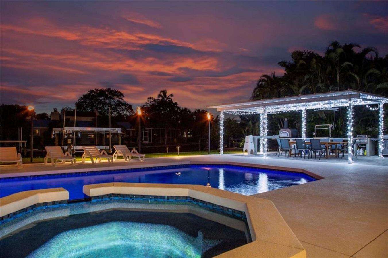 The house features a heated saltwater pool and jacuzzi.