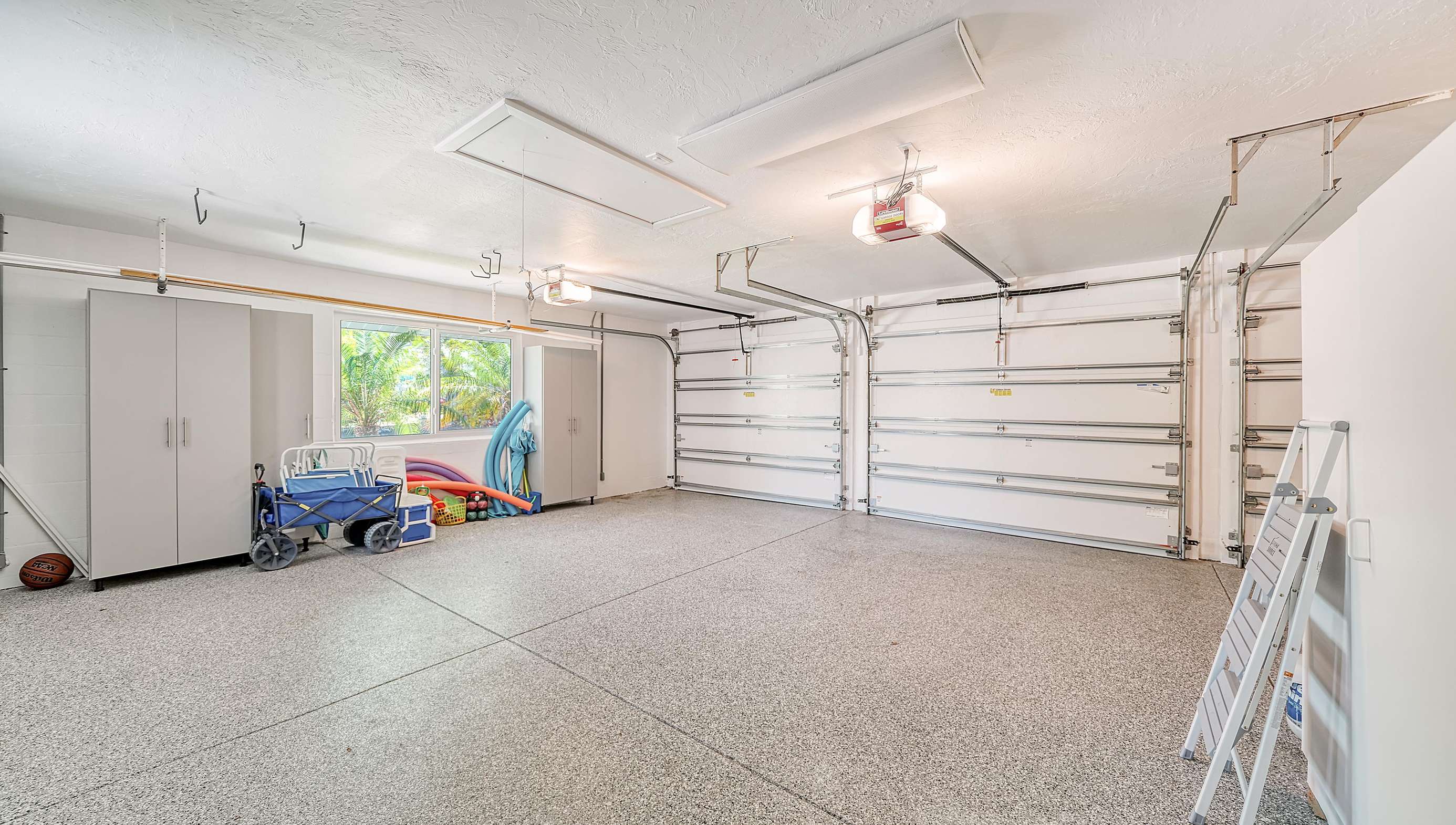 You can park 1 car in the garage (doors are insulated and wind resistant) and on the driveway.