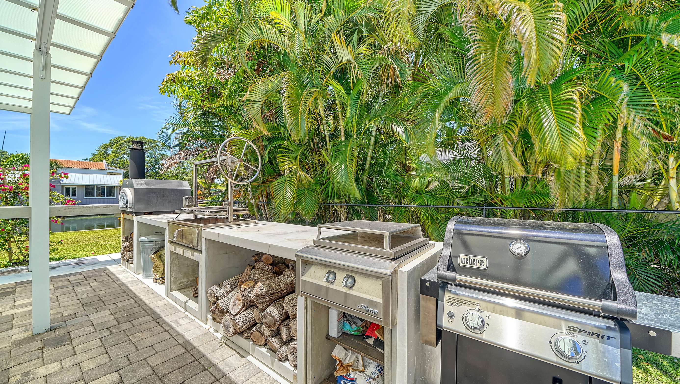 You will love the paved outdoor area with the heated pool (salt water pool), jacuzzi, gazebo with outdoor seating, fire pit and lounge chairs. The summer kitchen features a wood fired pizza oven and full cooktop.