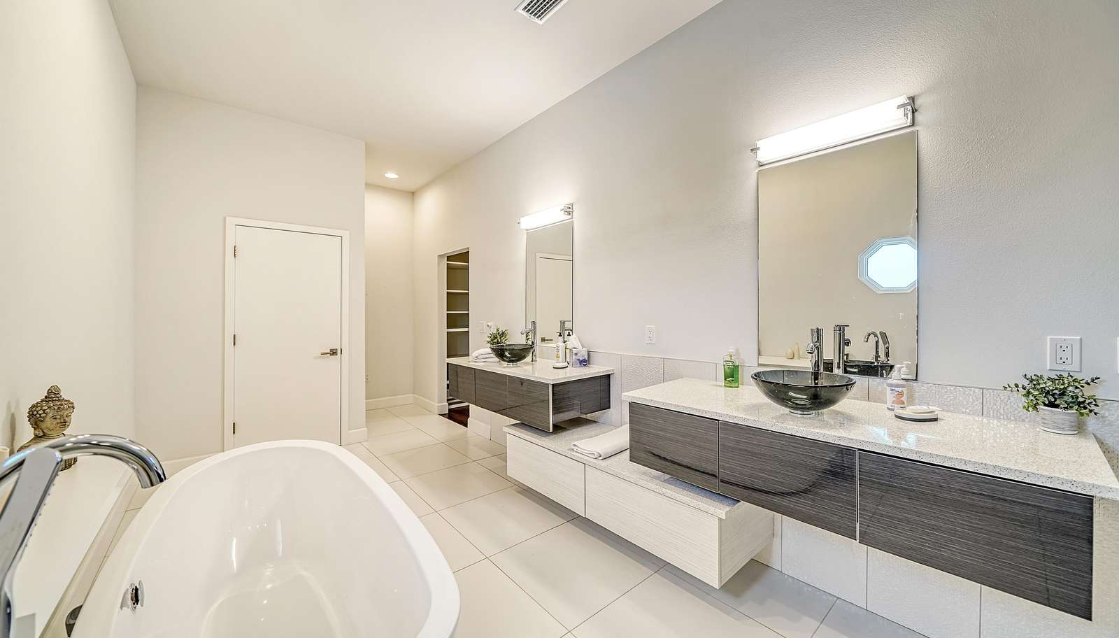The master bathroom on the 2nd floor includes 2 sinks, a tub and large walk-in shower.